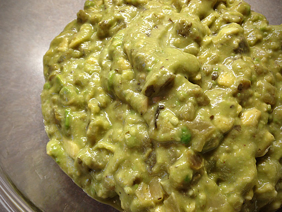 EASY-CREAMY GUAC RECIPE: Buy 4 medium or 3 large ripe Hass Avocados and a jar of Salsa Verde, a tomatillo-based green salsa. Slice the ripe Avocados and half, remove the pit and scoop the flesh into a mixing bowl. Pour in the jar of Salsa Verde. Mix at low speed with a counter-top mixer for 1 minute, or smash and stir the ingredients together by hand with a fork for 1-2 minutes. That's it!