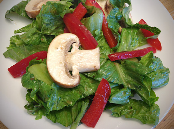 Romaine Lettuce plus Baby Bella Mushroom and Sweet Red Peppers hand-tossed with Balsamic Vinaigrette.